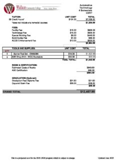 ASE CER Cost Sheet 2025-2026 : Wallace Community College