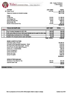 CIS Cyber Defense AAS Cost Sheet : Wallace Community College